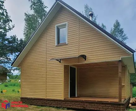 Благодаря простой системе крепления и удобной форме панелей двухпереломным малым сайдингом «Блок-хаус» можно отделать строения любых размеров, вплоть до самых небольших – бани, беседки, гаражи и пр.