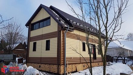 Дом с сайдингом «Блок-хаус» похож на сруб – традиционный и уютный. На вид его сложно отличить от натуральной древесины, зато он практичнее, не боится влаги и морозов.