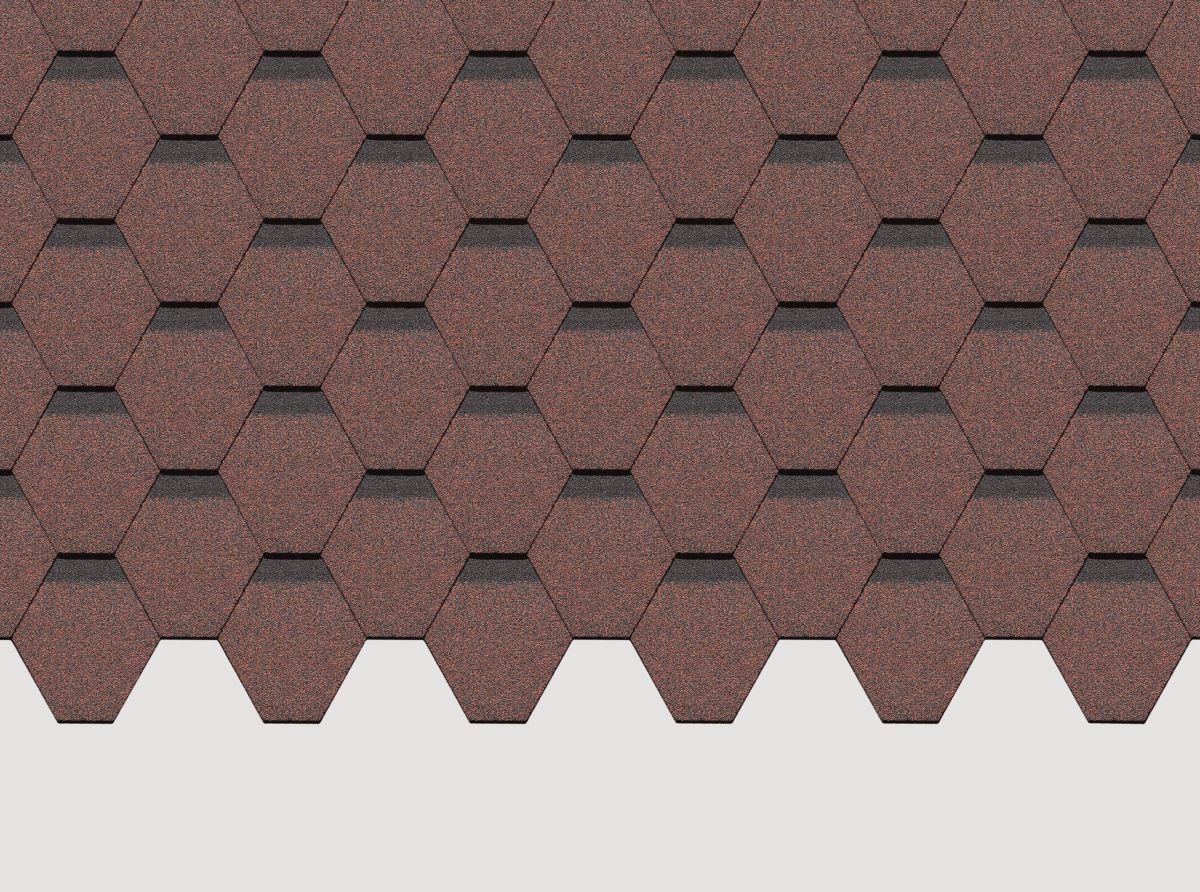 Гибкая черепица Docke Сота Красный — традиционный красный оттенок и форма нарезки "соты". Идеально подходит для кровли с уклоном от 12°. Гарантия 30 лет на долговечность и отсутствие деформаций.