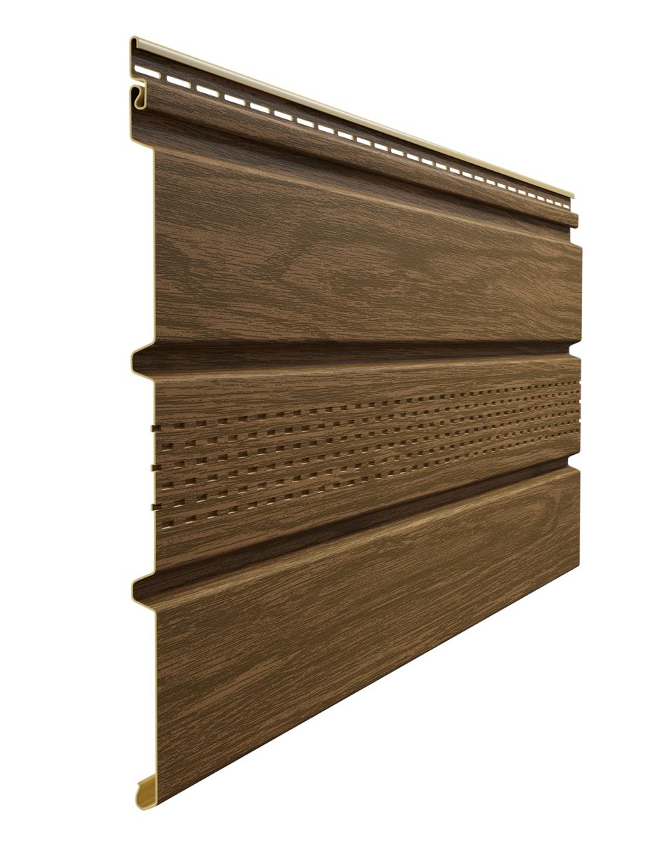 Софит Docke T4 с центральной перфорацией Миндаль — софит с текстурой под дерево, предназначен для защиты кровли от влаги и насекомых. Благодаря антиураганному замку, монтаж удобен и без деформаций. Цвет «Миндаль» прекрасно сочетается с сайдингом под дерево и натуральным деревом.