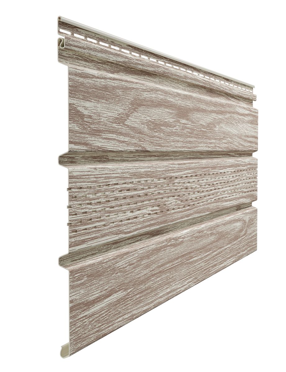 Софит Docke T4 с центральной перфорацией Орех — софит с центральной перфорацией для вентиляции кровли, долговечен и устойчив к внешним воздействиям. Цвет «Орех» с фактурой дерева гармонично сочетается с сайдингом и натуральными материалами.